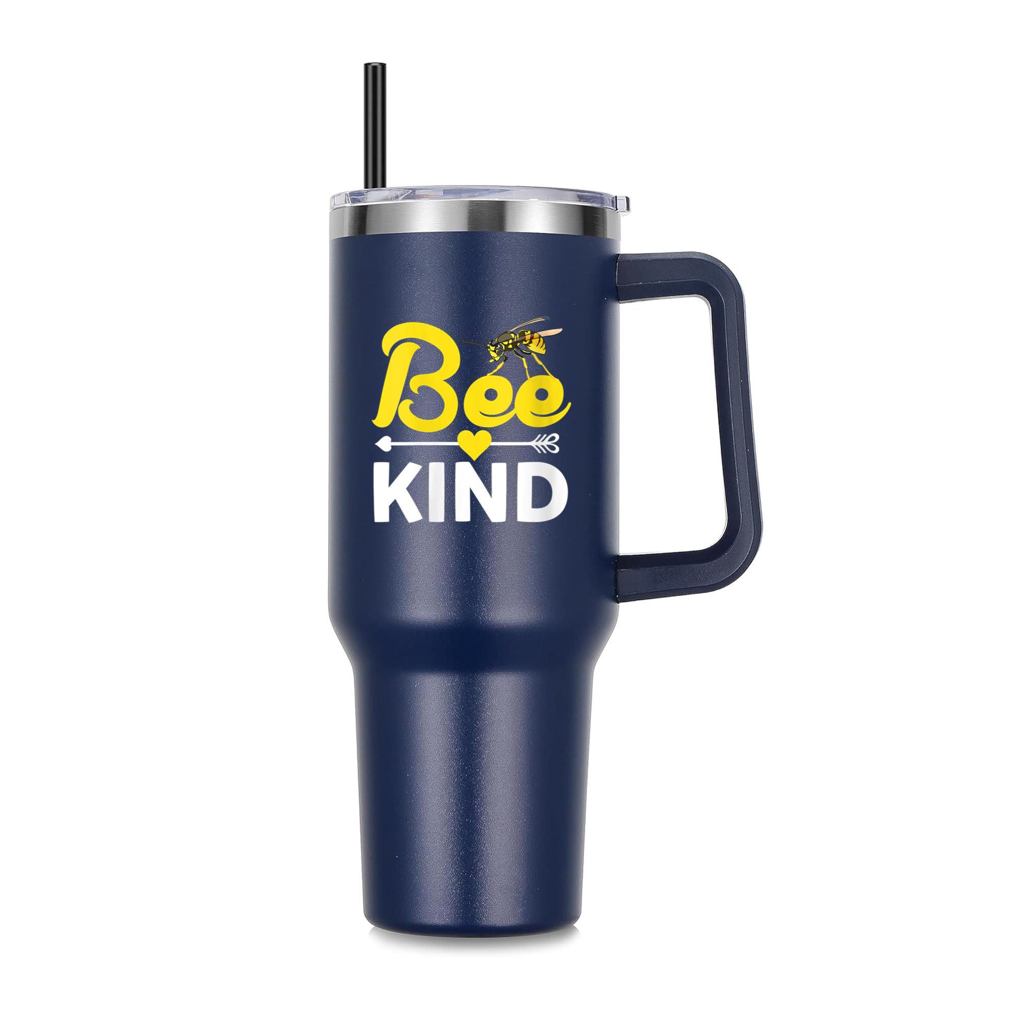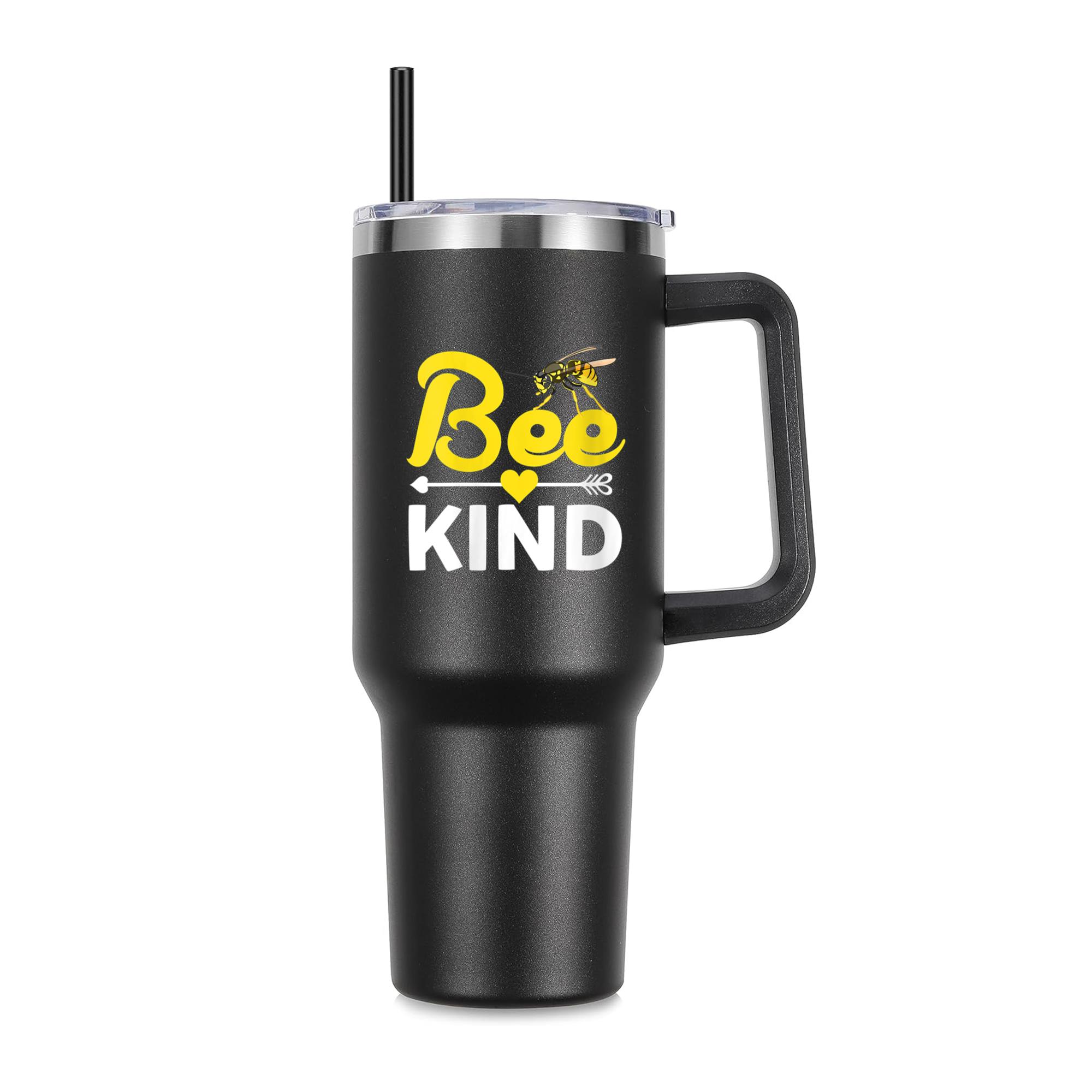Bee Kind 40oz Stainless Steel Tumbler 40oz Stainless Steel Tumbler with Handle and Straw – Double-Wall Vacuum Insulated Travel Mug with Lid