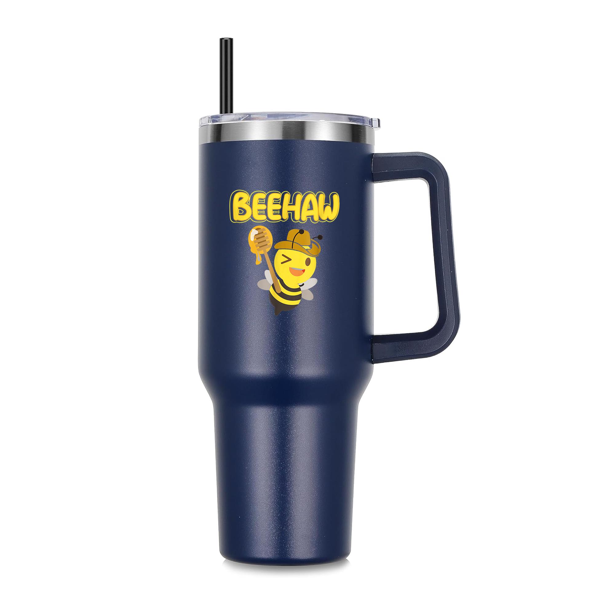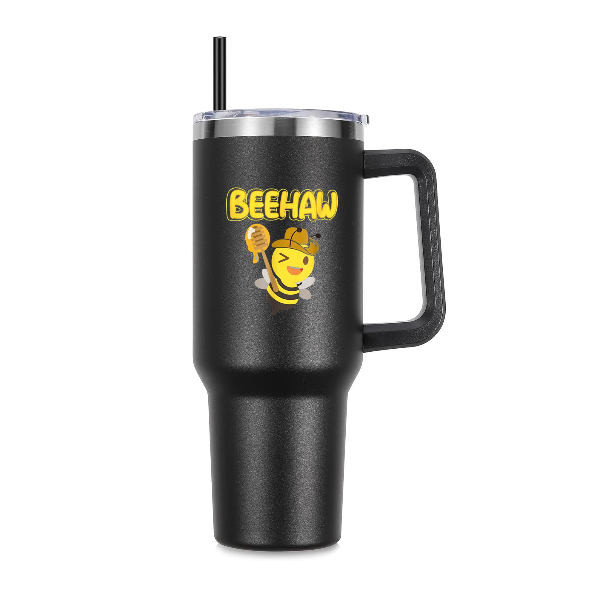 Beehaw Cowboy Bee Cowgirl 40oz Stainless Steel Tumbler 40oz Stainless Steel Tumbler with Handle and Straw – Double-Wall Vacuum Insulated Travel Mug with Lid