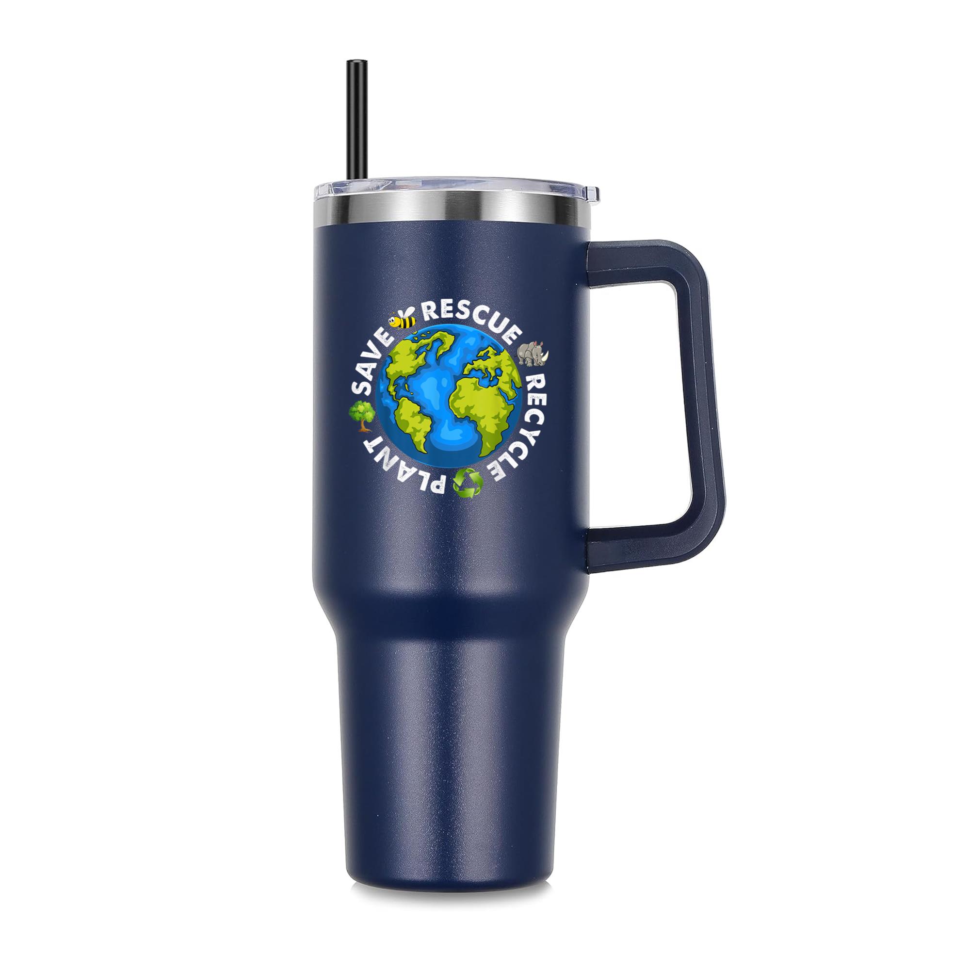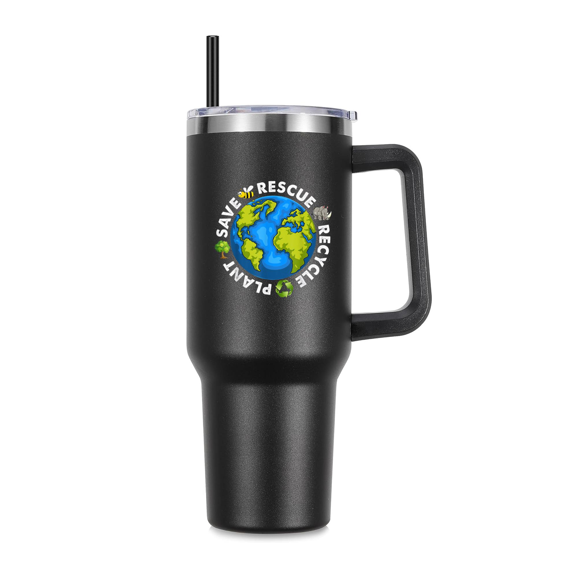 Earth Day Save Bees Rescue Animals Recycle Plastics 40oz Stainless Steel Tumbler 40oz Stainless Steel Tumbler with Handle and Straw – Double-Wall Vacuum Insulated Travel Mug with Lid