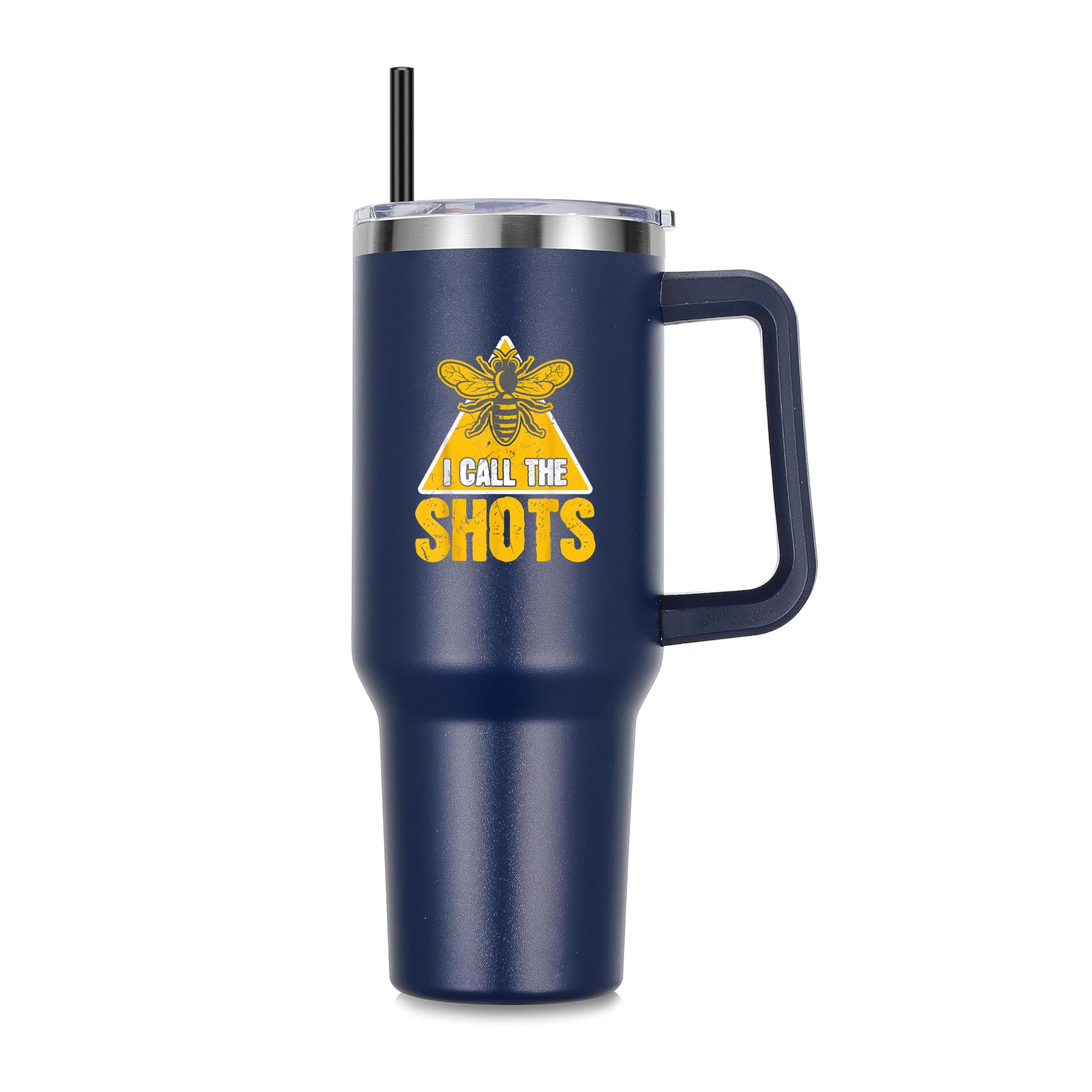 I Call The Shots Bee 40oz Stainless Steel Tumbler 40oz Stainless Steel Tumbler with Handle and Straw – Double-Wall Vacuum Insulated Travel Mug with Lid