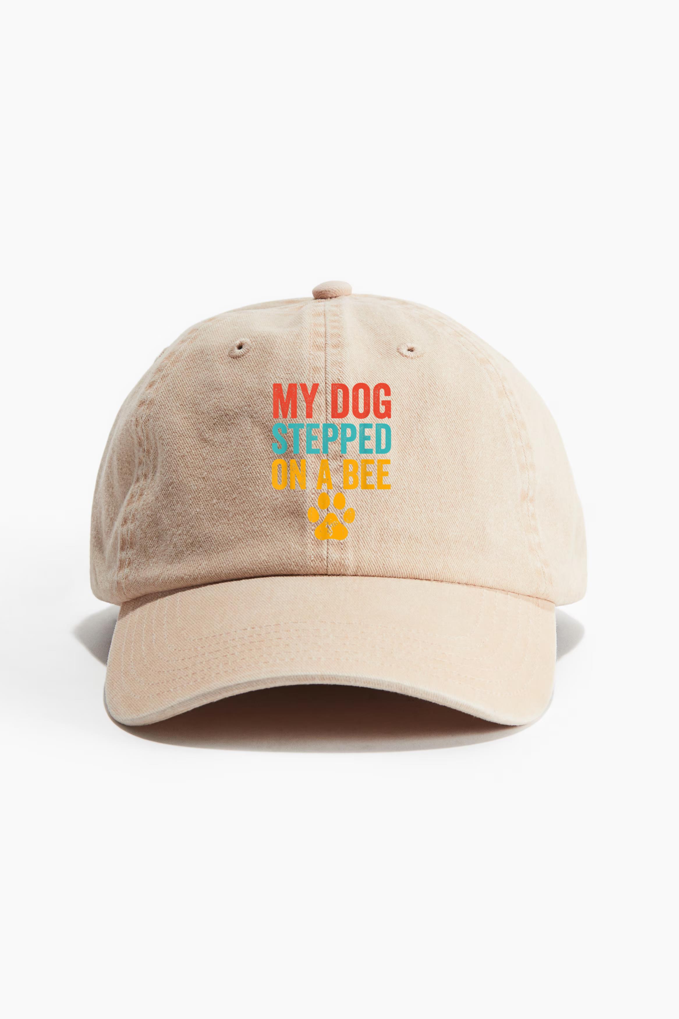 Top off your look with our My Dog Stepped On A Bee Cotton Twill Cap Cotton Twill Cap. Made from durable cotton fabric with a comfortable fit and adjustable strap, this timeless hat offers everyday style and reliable protection from the sun.