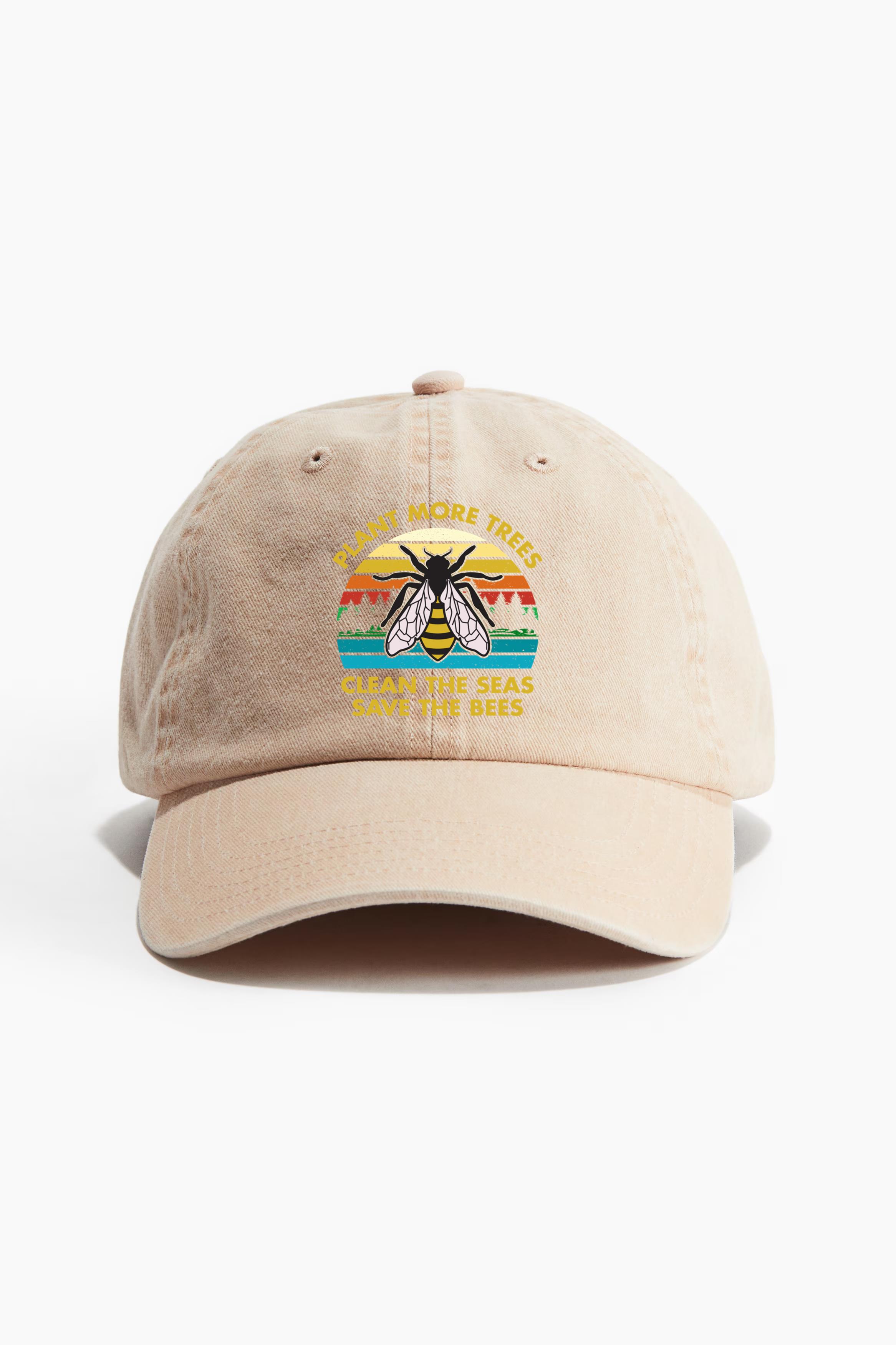 Plant Trees Clean Seas Save Bees Earth Day Cotton Twill Cap Cotton Twill Cap – Adjustable 6-Panel Baseball Hat for Everyday Wear