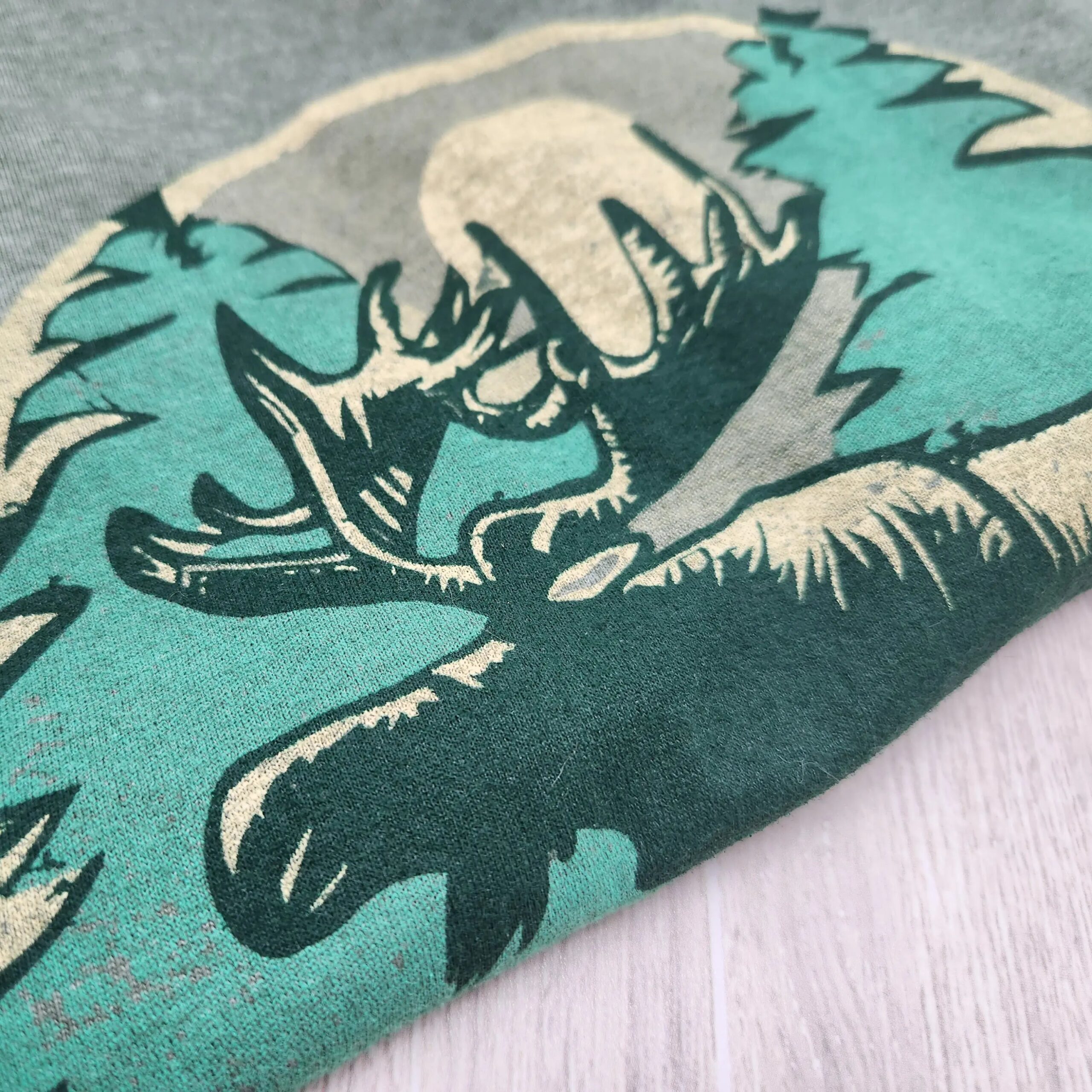 Embrace nostalgia with our Retro Moose Graphic Print Tee from the Retro Collection. Crafted from a soft poly/cotton blend, this unisex tee features a modern classic fit, rib collar, and double-needle sleeves and hem. Perfect for nature walks or casual hangouts, this shirt offers comfort and style. Designed and screen printed in-house in Maine. Pair with our matching hats for a complete look.