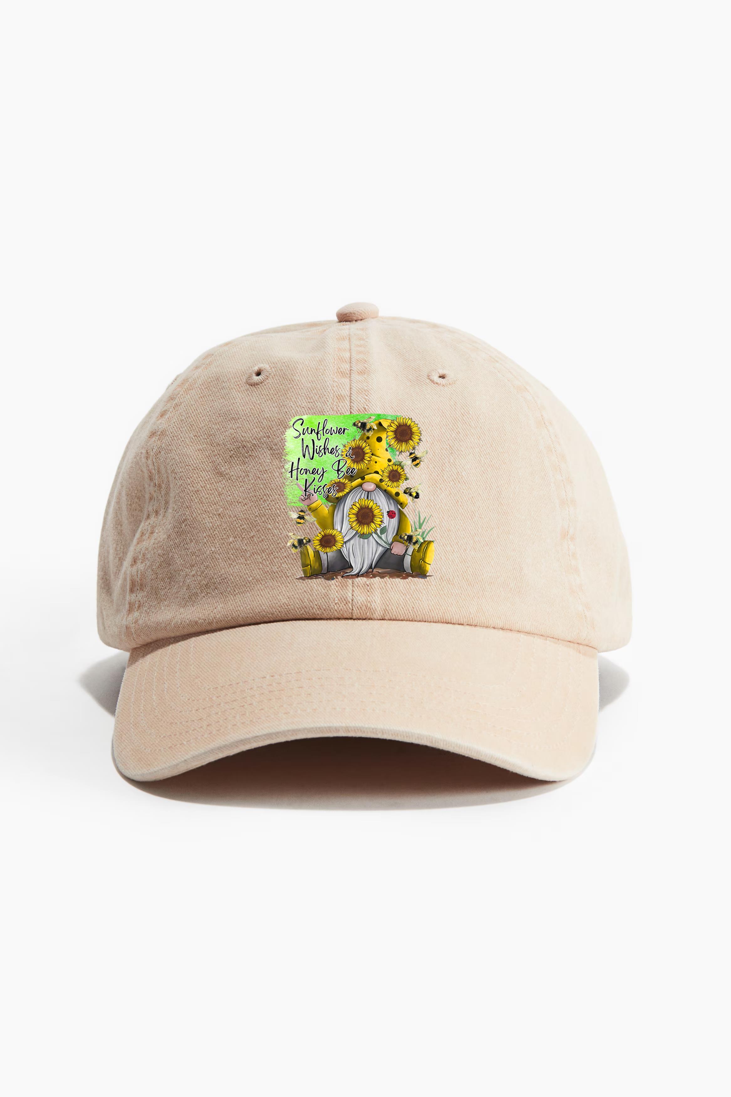 Sunflower Wishes Honey Bee Cotton Twill Cap Cotton Twill Cap – Adjustable 6-Panel Baseball Hat for Everyday Wear