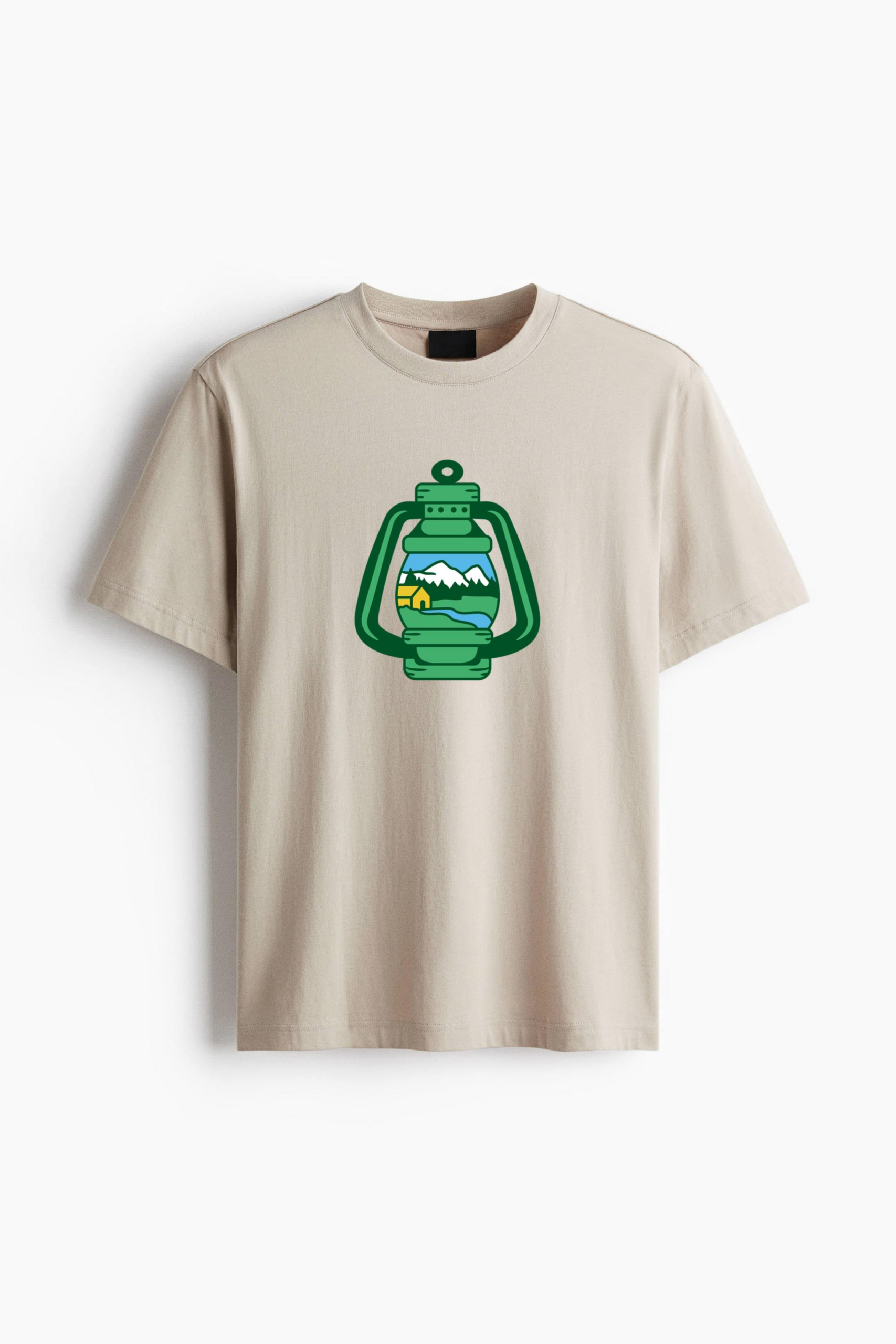 • Vintage Lantern Illustration With Mountain Scenery Oversized T-Shirt