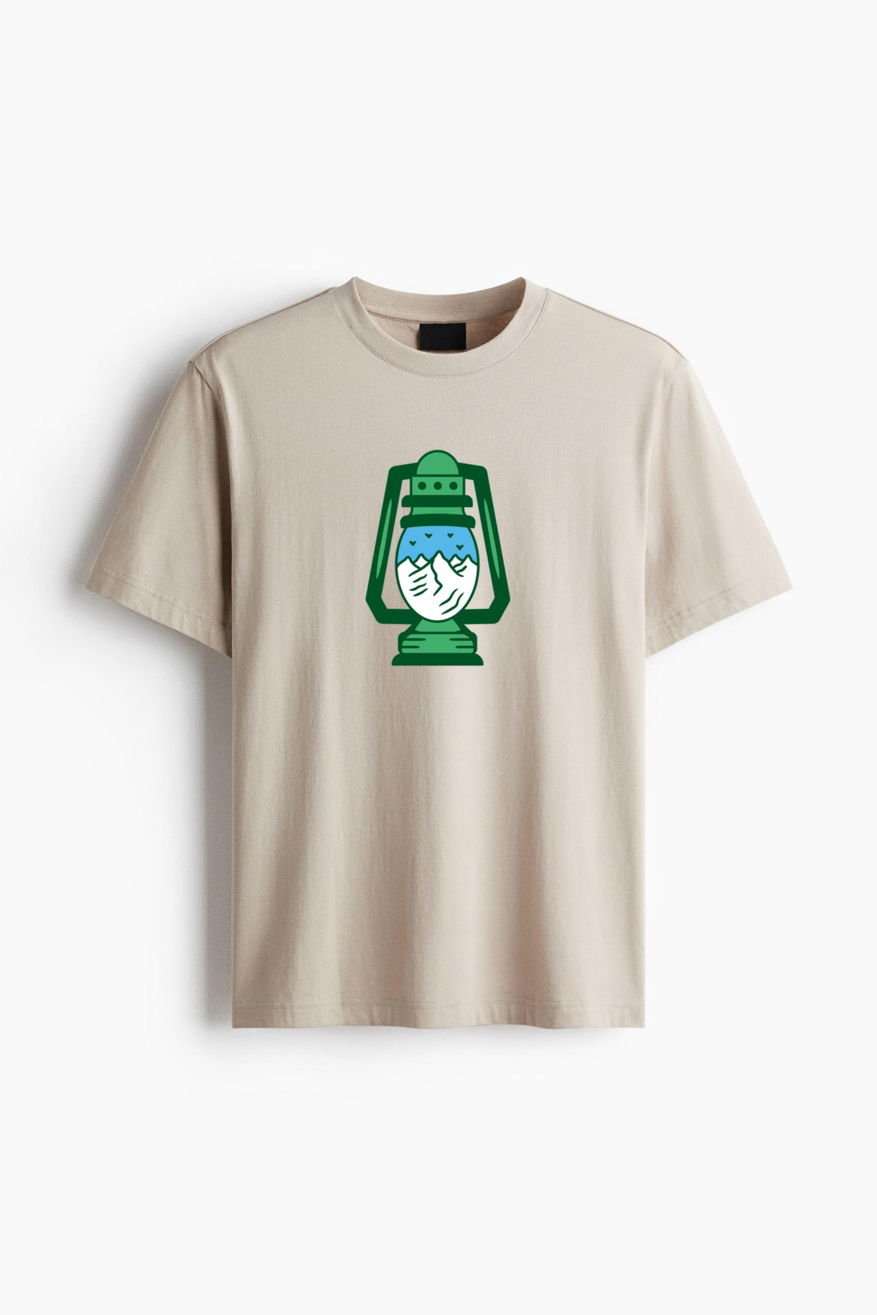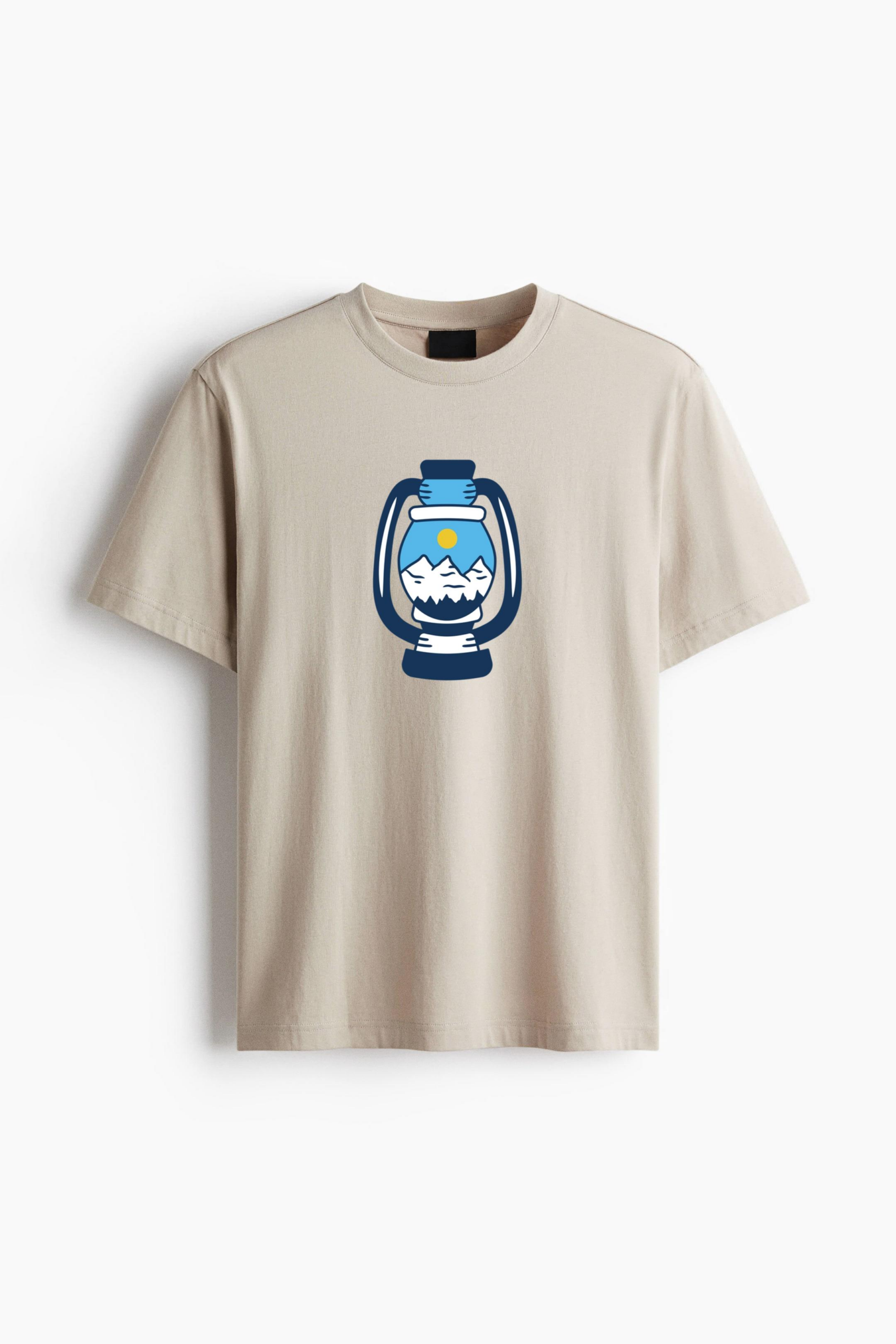 • Vintage Lantern With Mountain And Sky Scene Oversized T-Shirt